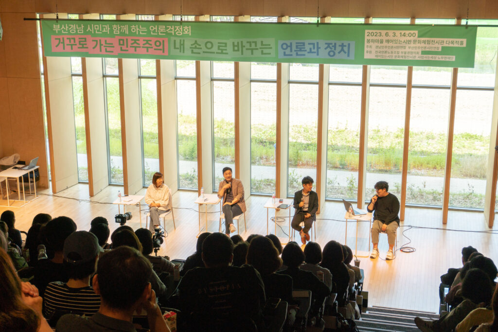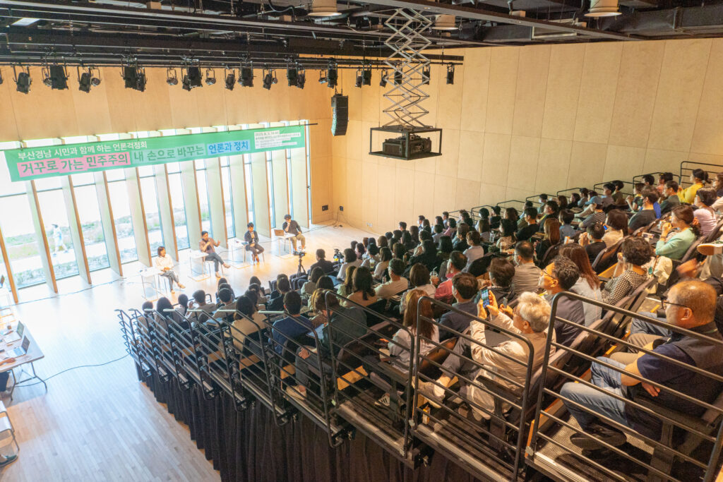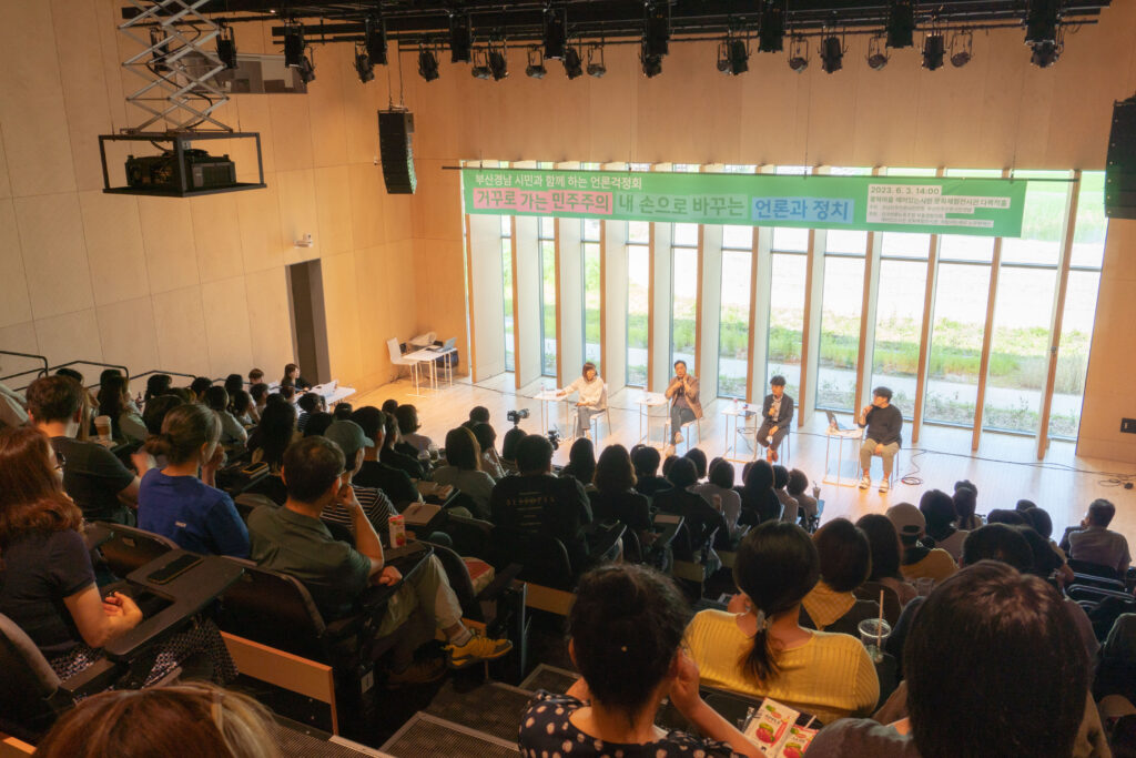 지난 4월 14일, ‘한국언론의 현실과 개혁 과제’를 주제로 한 부산민언련의 <시민미디어특강>이 참가자들의 열띤 호응 속에 마무리되었습니다. 부산시민운동지원센터 혁신홀을 꽉 채운 특강 신청자들과 언론 현실에 공분하고, 대안을 고민하는 시간이었습니다.