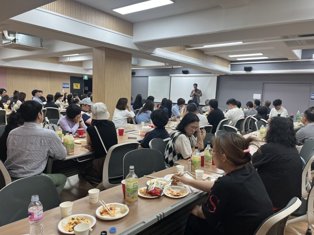 안타깝게도 변상욱 기자께서 서울로 돌아가야 하는 기차시간때문에 뒤풀이를 못하는 대신, 특강 전 조금 일찍 온 참여자들과 ‘앞풀이’를 살짝 진행했는데요. 옹기종기, 하하호호….변상욱 기자에 대한 팬심으로 가득한 시간이었습니다.