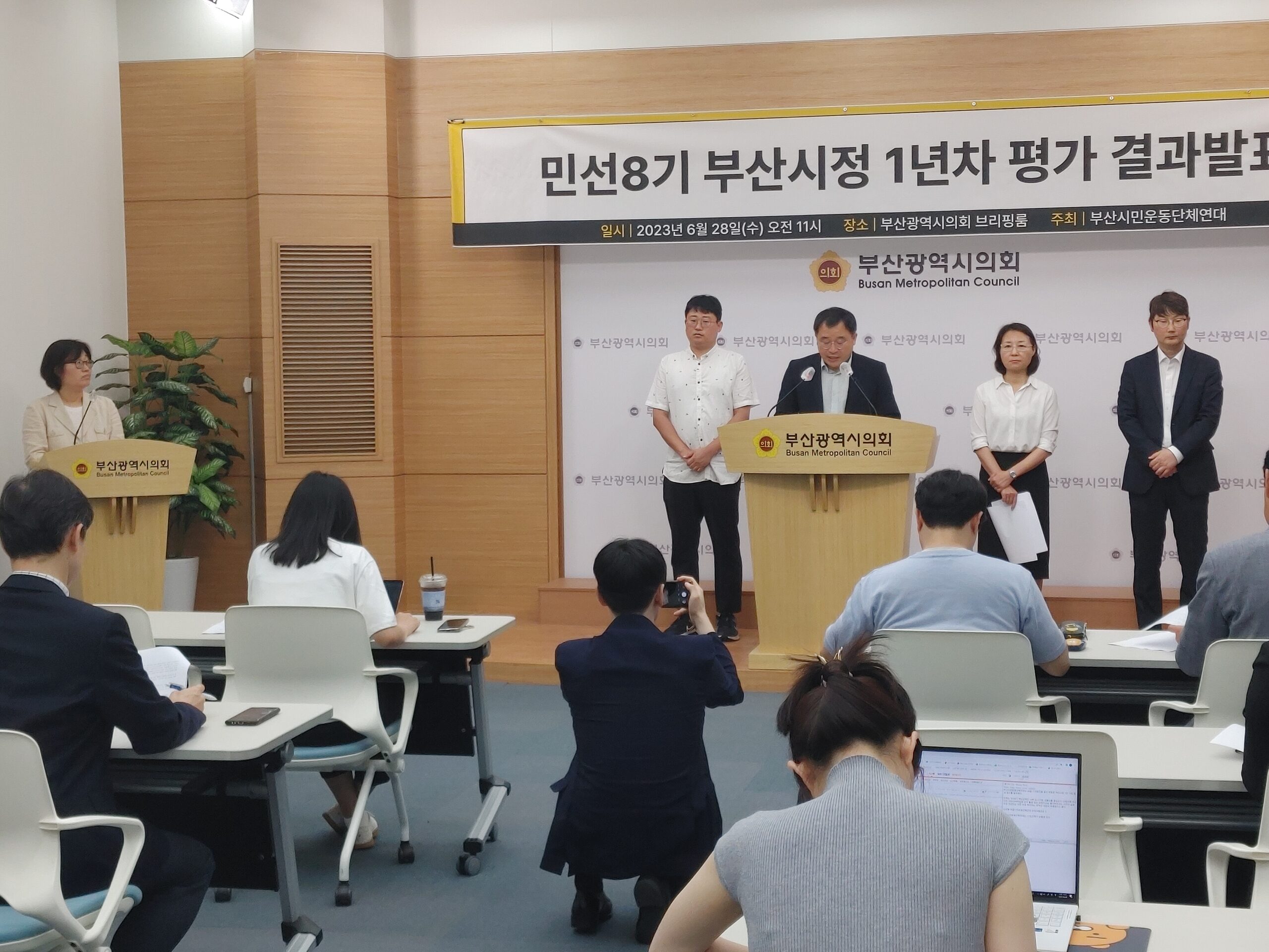 박형준 시장 취임 1년을 맞아 시정 1년 평가 활동을 했습니다. 우리단체도 소속되어 있는 부산시민운동단체연대는 6월 21일 간담회를 열어 시민복지보건 분야, 원전 및 후쿠시마 오염수 대응, 도시개발 사업, 민관협치와 시민소통, 서민경제 등 각 분야별 추진 사업을 평가하고 개산방향을 토론했고, 그 결과를 취합해 28일 발표했습니다.