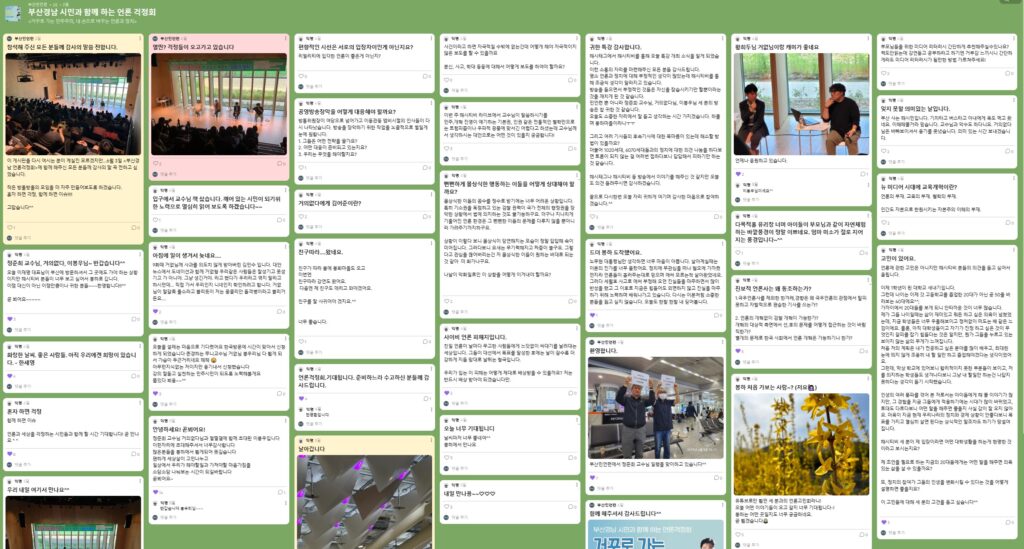 퇴행하는 민주주의 시대에 시민은 언론의 사회적 책임을 더 기대하지만, 검증되지 않거나 갈등을 조장하는 정보에 피로감을 호소하는 시민들도 많습니다. 시민이 걱정하는 언론의 문제는 무엇인지 즉석 응답도 진행되었는데요. 사전에 게시판에 올린 질문과 현장 질문을 토대로 출연자들이 의견을 주셨습니다.