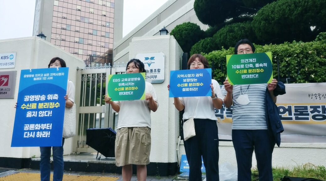 7월 4일(화), 부산의 시민사회는 제대로 된 의견 수렴도 없이 졸속적으로 진행되고 있는 수신료 분리징수 추진을 즉각 중단할 것을 요구하며 기자회견을 개최했습니다.