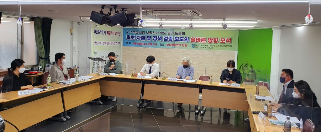 2021부산.서울시장 보궐선거 미디어감시연대는 토론회에서 제안된 내용을 정리,발전시켜 내년 대통령선거와 지방선거에서는 충실한 선거보도가 이뤄질 수 있도록 하자는 논의를 끝으로 토론회를 마무리하였습니다.