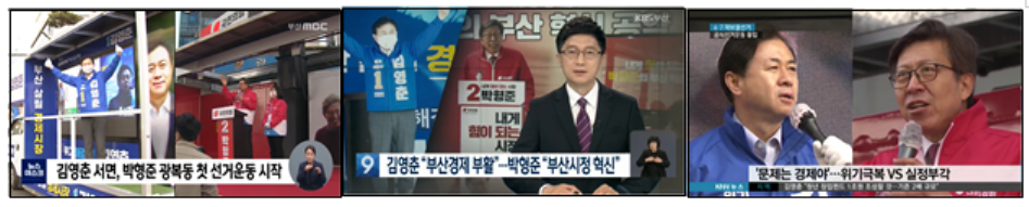 선거운동 시작일을 반영한 3월 25일 방송 뉴스와 3월 26일 신문 기사를 살펴보았다. 부산MBC는 <부산도 선거운동 시작..김영춘, 박형준 격돌>에서 김영춘 후보와 박형준 후보의 행보와 선거 전략만 언급했다. KBS부산은 <[공약검증K] 재난지원금 ‘찬성’…지원 방식은 달라>에서는 재난지원금에 대한 6명 후보의 답을 전했고, <“교육발전기금 1조 조성”…“中企 중심도시 육성”>(단신), <부산시장 후보 재산…김영춘 11억·박형준 48억>(단신)은 김영춘 후보와 박형준 후보의 정책과 재산 신고 내역을 소개해 군소후보에 대한 정보는 전혀 알 수가 없었다.
