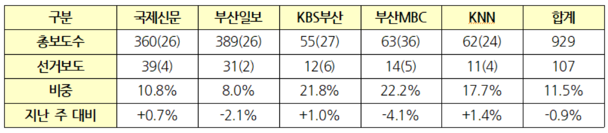 [부산시장보궐선거미디어감시연대 모니터 보고서 4] 공식 선거운동 시작해도 공(空)약 나열에 그친 지역언론