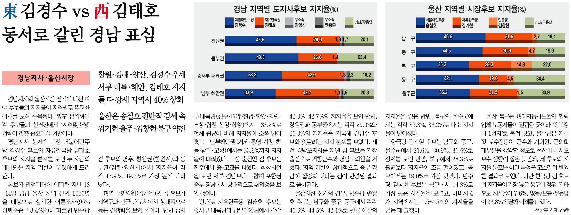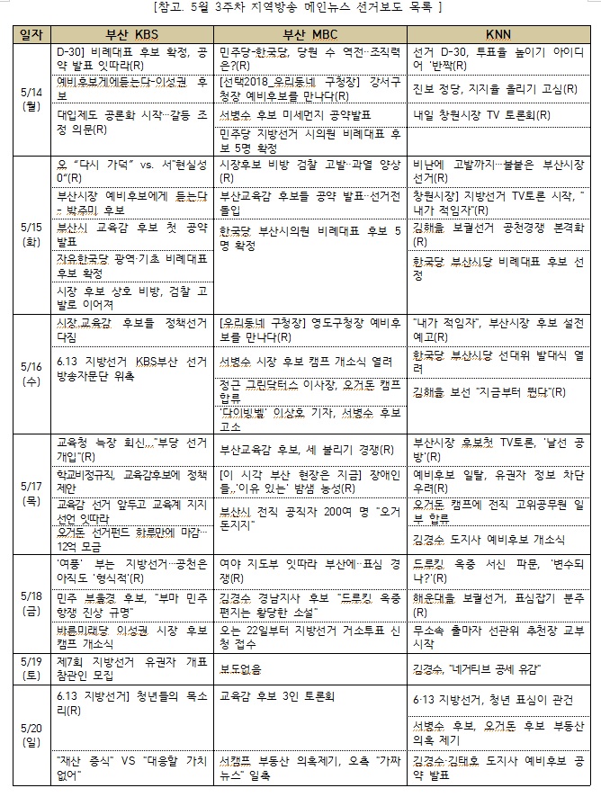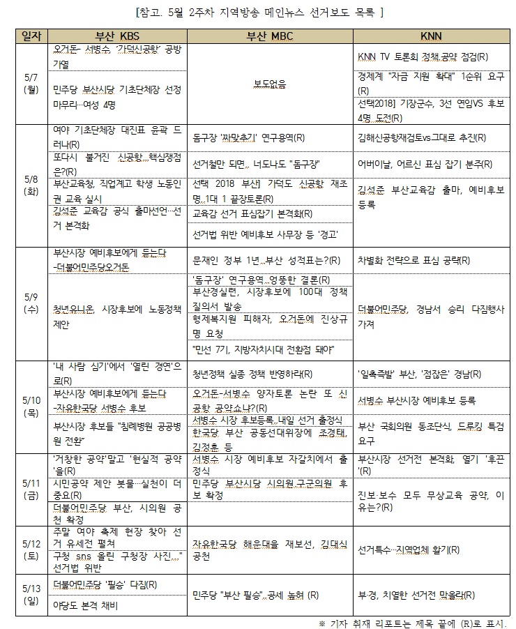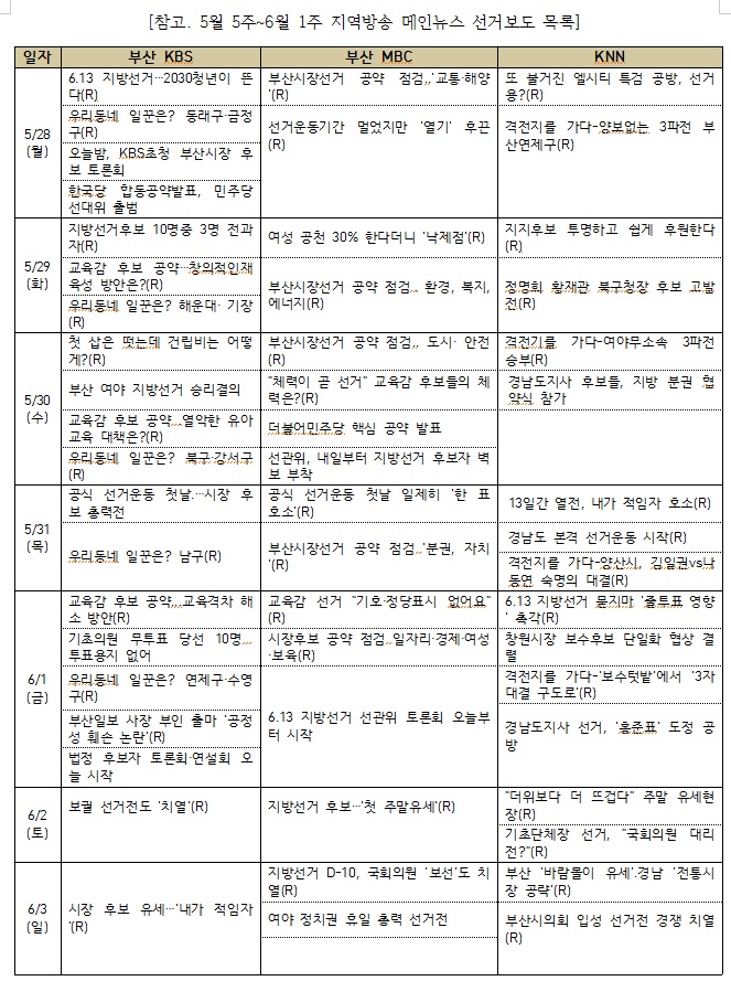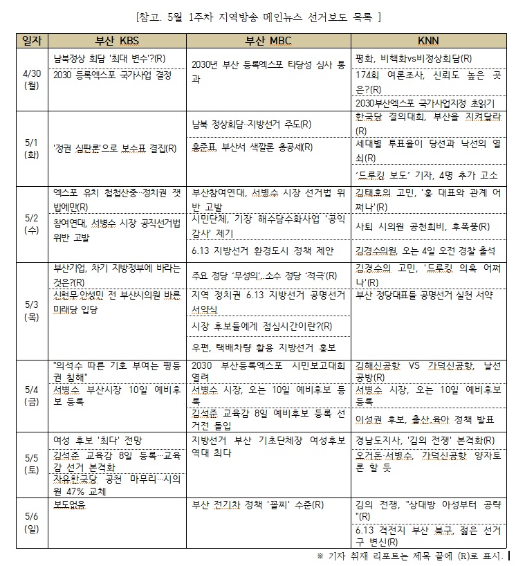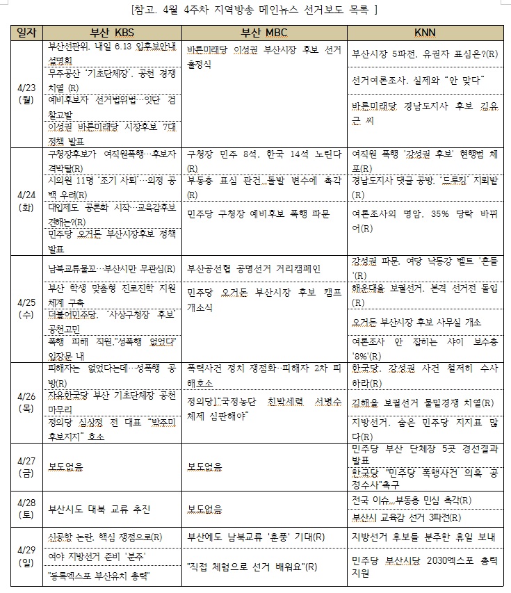 ○ 모니터 대상 : 부산일보, 국제신문 (*경남은 경남도지사 선거만 포함)