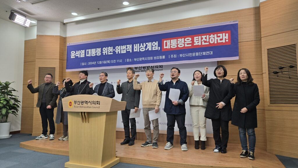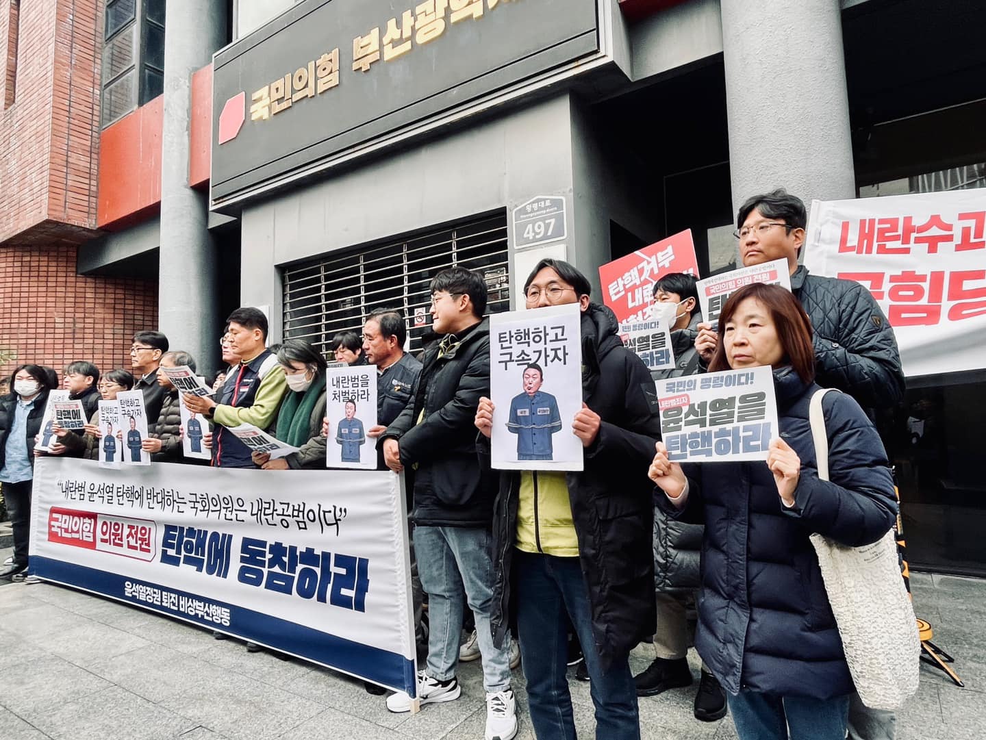 지난 1월 17일, ‘국민의힘 박수영 의원 사무실 항의 방문’과 ‘부경대 학생 과잉 진압’ 현장을 보도한 뭐라카노 팀에게 상패를 전달했는데요. ‘부산 청년들의 행동하는 저널리즘’을 표방하는 ‘뭐라카노’는 유튜브 기반의 시민 미디어로, 최근에는 부산에서 열리는 ‘윤석열 퇴진 부산시민대회’ 현장의 모습을 담아내는 데 앞장서고 있습니다.