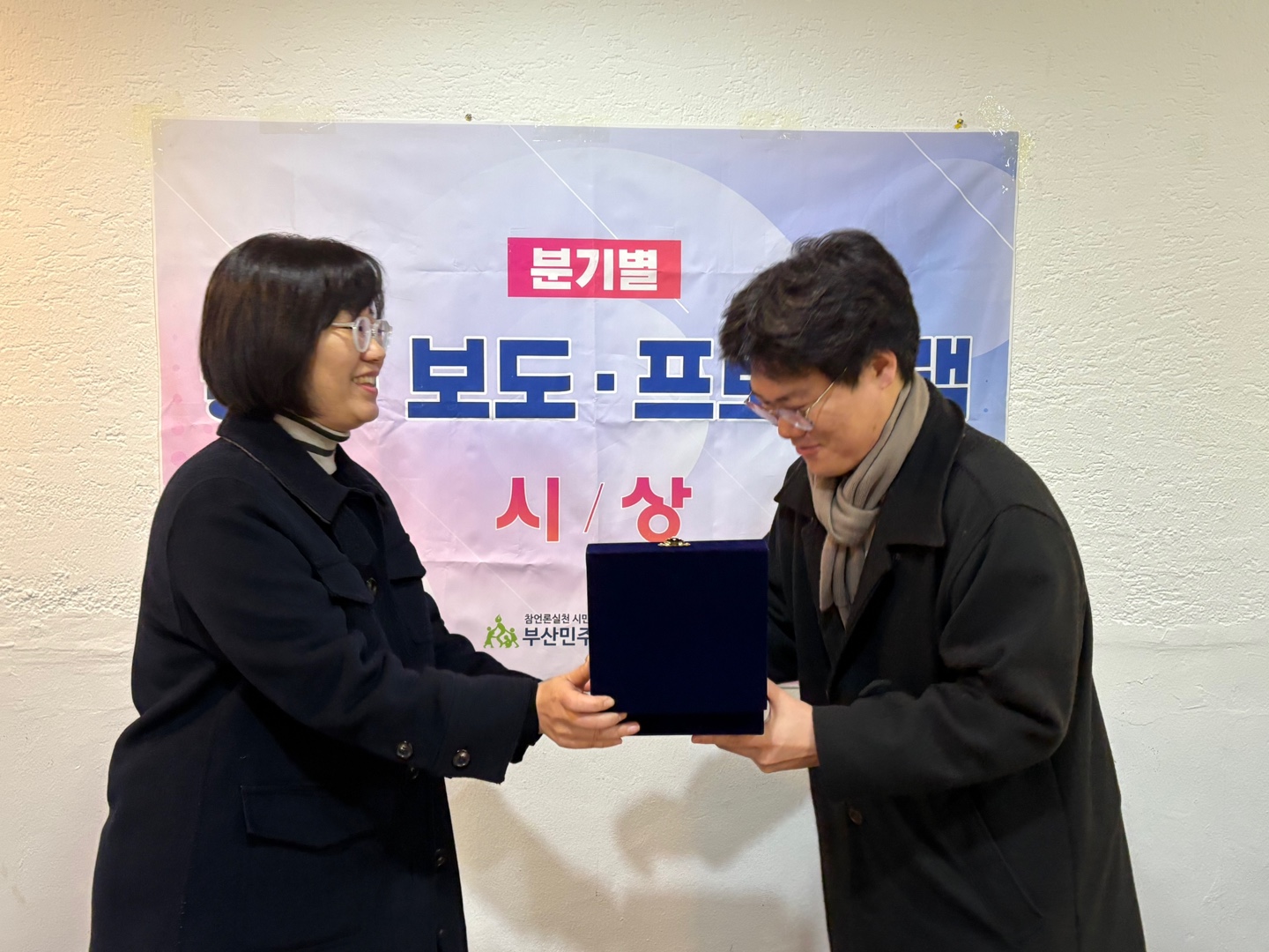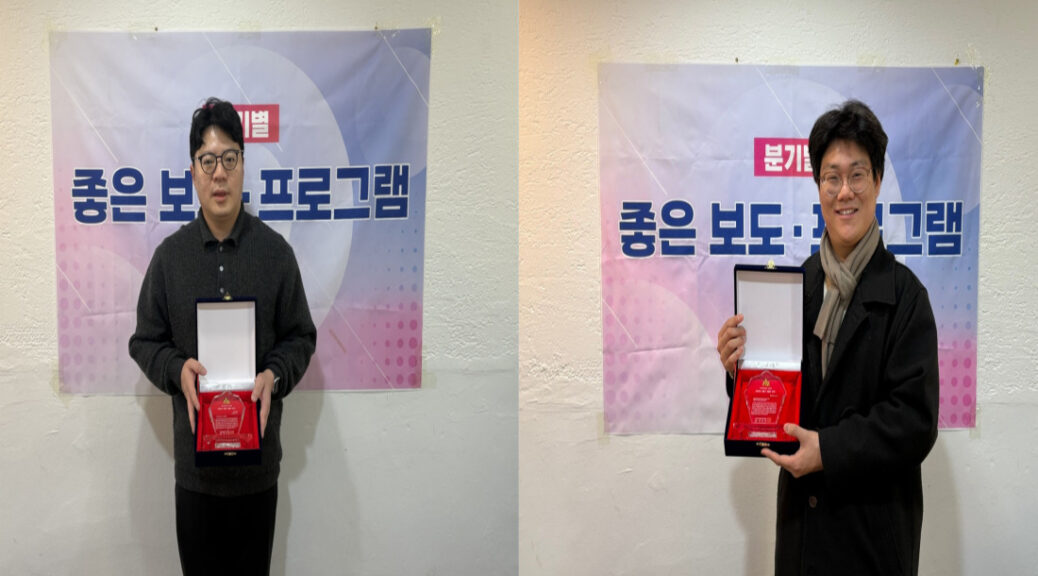 지난 1월 17일과 20일, 2024년 4분기 좋은 보도ㆍ프로그램 수상자인 뭐라카노 팀과 부산MBC 송광모 기자에게 상패를 전달했습니다.