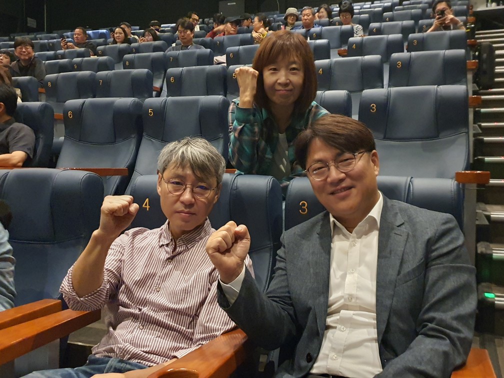 영화 상영 전 복성경 대표, 김진혁 감독, 이호찬 MBC 본부장의 모습