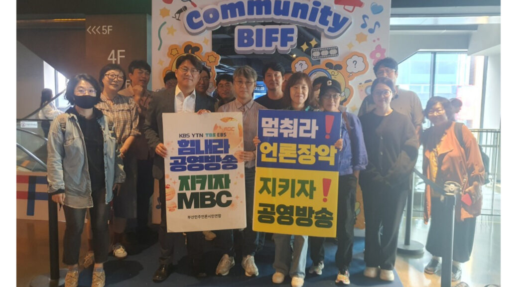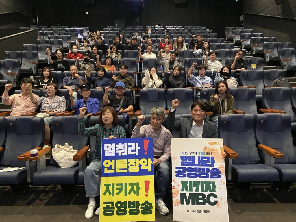 대화가 끝난 뒤엔 영화 상영에 와주신 관객들과 함께 ‘몀춰라 언론장악’, ‘지키자 공영방송’, ‘힘내라 공영방송’, ‘지키자MBC’ 구호가 담긴 피케팅을 진행하며 행사를 마쳤습니다.