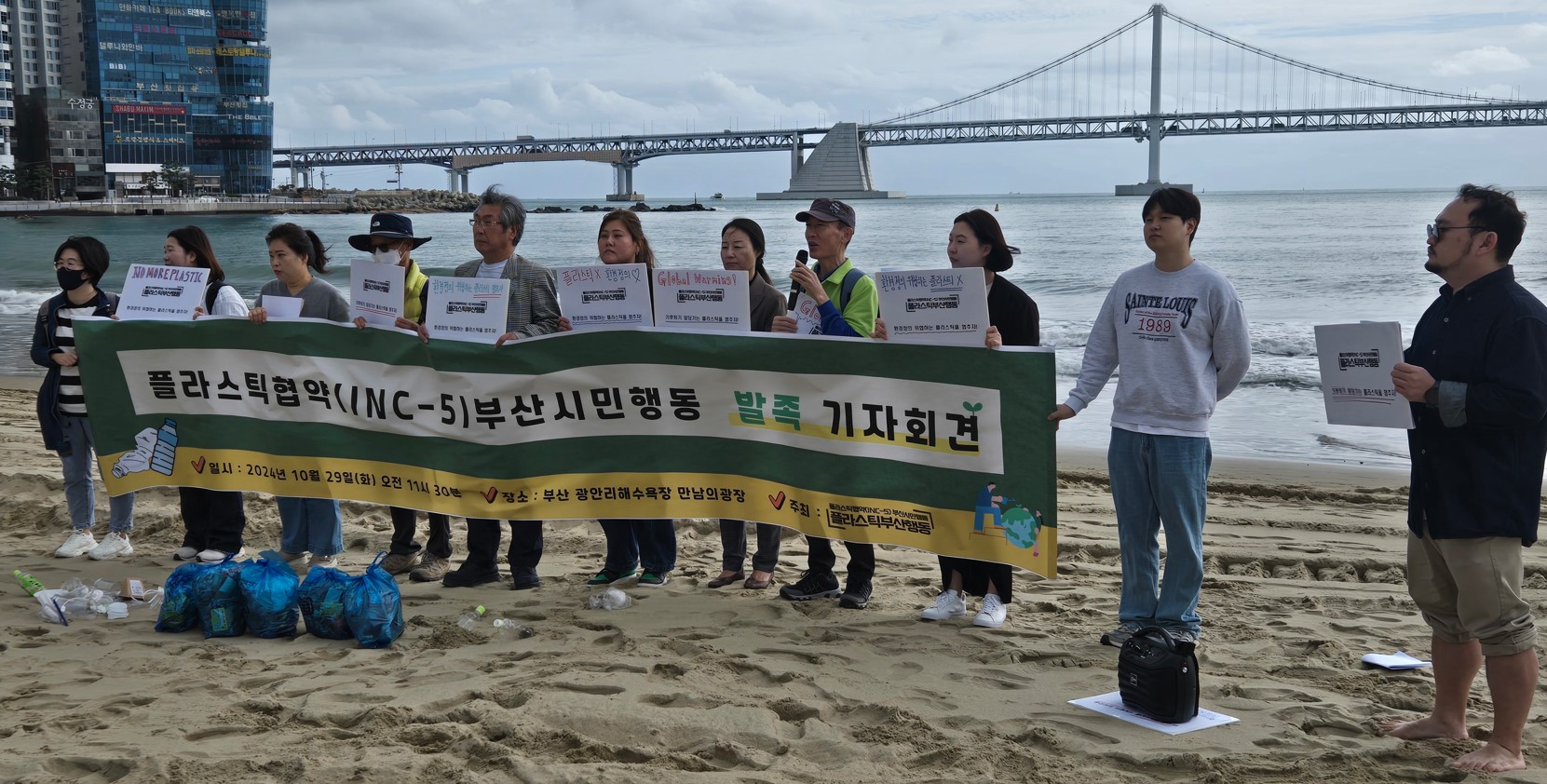 시민행동은 출범을 알리는 기자회견을 10월 29일 광안리 만남의 광장에서 열고, 플라스틱 오염의 심각성과 전세계가 근본적인 해결을 위한 협약에 나서야 한다는 점을 강조했습니다.
