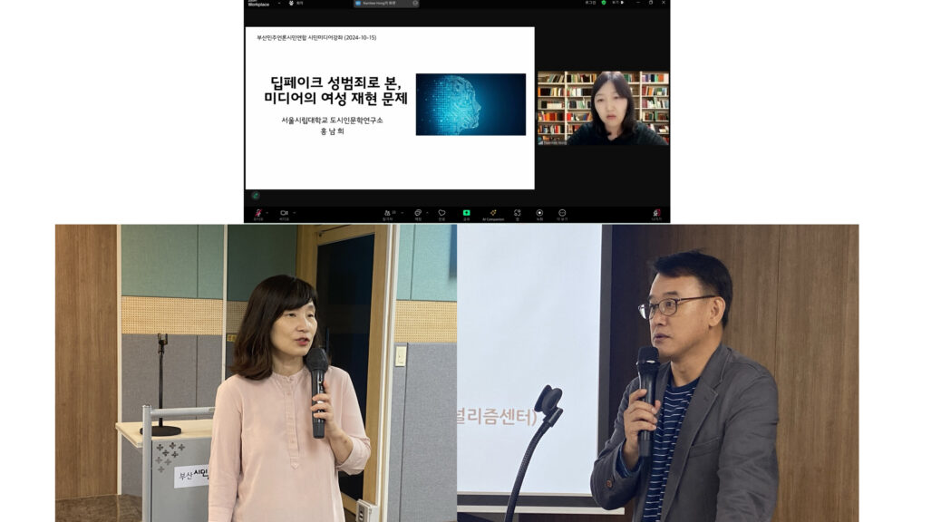 1강 ‘딥페이크 성범죄로 본 미디어의 여성 재현 문제’는 미디어와 젠더를 주요하게 연구하고 있는 서울시립대 홍남희 교수의 강연으로 진행했는데요, 현재 한국의 딥페이크 성범죄 심각성과 함께 언론 보도와 미디어의 문제도 짚어줬습니다. 또 홍 교수는 디지털 기술에 의한 범죄는 제작-유통-소비 모든 과정에서 여성 피해를 양산하며 젠더 폭력 양상을 보인다고 했습니다. 이는 전세계적으로도 비슷한 양상인데 디지털 범죄의 수익화가 쉽고 규모마저 커진 반면, 규제 마련은 더뎌 문제는 심각하다고 했습니다.