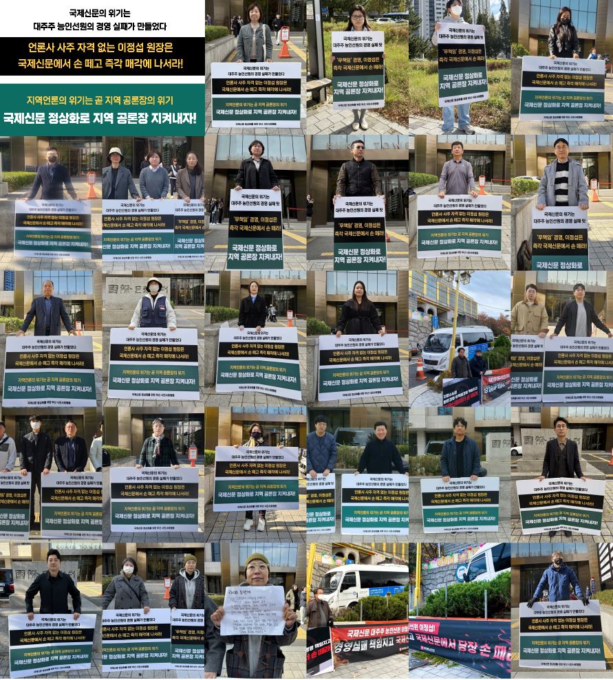 여기엔 부산민언련도 함께했는데요, 국제신문 위기는 곧 지역 공론장의 위기로 규정하고, 모든 어려움을 떨치고 언론 본연의 역할만 충실할 수 있도록 지역 시민사회와 함께 연대할 것을 약속했습니다. 이와 관련해 지역언론 현안 연대 단체인 ‘언론공공성지키기부산연대’도 기자회견을 비롯한 다양한 캠페인 등 적극 연대에 나설 예정입니다.