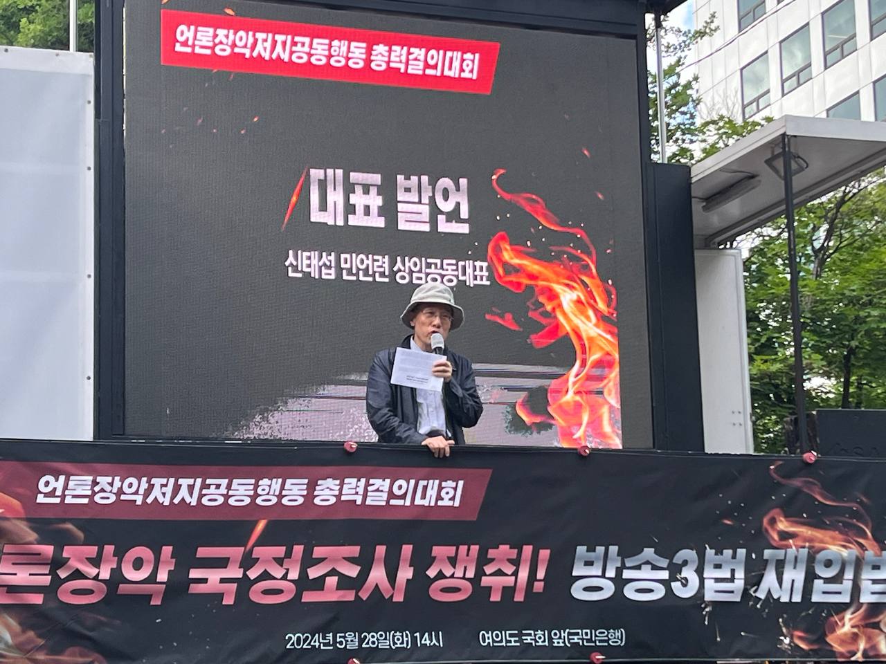 어제 국회본회의에서 채상병특검법이 국민의힘의 반대속에 또 다시 폐기되었고 지금 이 순간에도 필리버스터를 하며 방송4법 거부 방패막에 동원되고 있는 국민의힘 의원들에게 국민들의 분노를 보여주는 기자회견이었습니다.