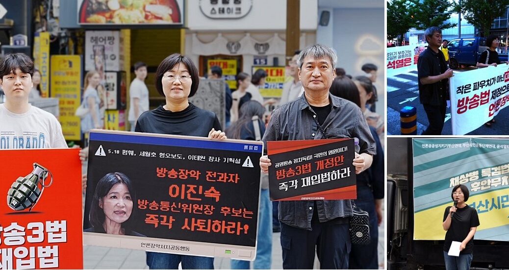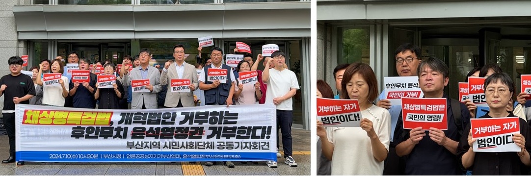 우리 단체는 언론공공성지키기부산연대 등 연대단체와 함께 7월 한달 동안 ‘방송법 재입법’을 촉구하고 윤석열 대통령의 거부권 행사를 반대하는 활동을 진행했습니다.