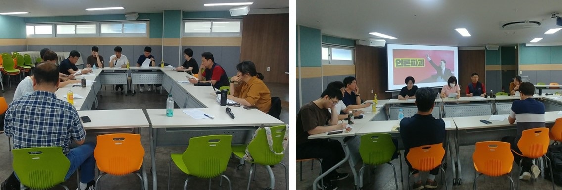 이어 윤석열 정권의 언론장악 현황 공유와 함께 지역에서도 이진숙 사퇴 촉구 서명 등 온라인 행동에 참여하기로 했습니다. 또 지역에서 진행하고 있는 거부권 거부 시국대회 등도 공유했습니다.