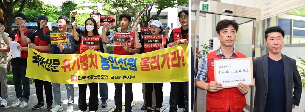 이와 관련 국제신문지부는 7월 4일 부산경찰청 앞에서 기자회견을 열고 합의서 약속을 이행하지 않은 능인선원측을 고발했습니다. 지부는 능인선원 무책임 행태를 비판하며 ‘조건없이 국제신문에서 손떼라’고 촉구했습니다.