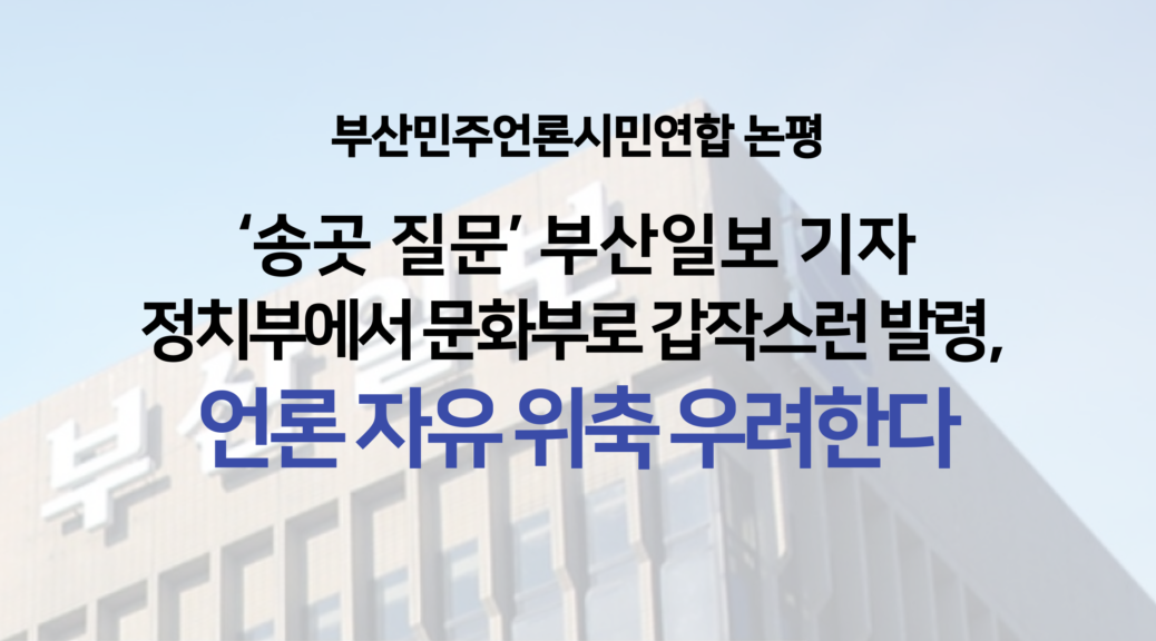 해양수산부 출입기자단의 ‘지역 방송 배제’로 촉발된 문제가 단순이 내규 수정에 그쳐서는 안된다. 해양수산부는 이를 계기로 지역민의 알권리를 실질적으로 보장하고, 언론의 취재 평등권과 감시‧견제 기능이 제대로 작동하는 개방적 미디어 소통 구조로 전면 개편할 것을 촉구한다.