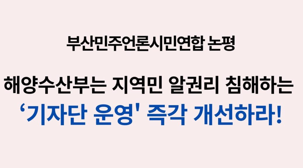 해양수산부는 지역민의 알권리를 침해하고, 언론의 감시‧비판 기능을 위축시킬 수 있는 출입기자단의 폐쇄적 운영 방식을 즉각 개선해야 한다. 일부 언론에만 제공해야 할 정보란 없고, 모든 언론에 평등한 취재 기회를 줘야 하기 때문이다.
