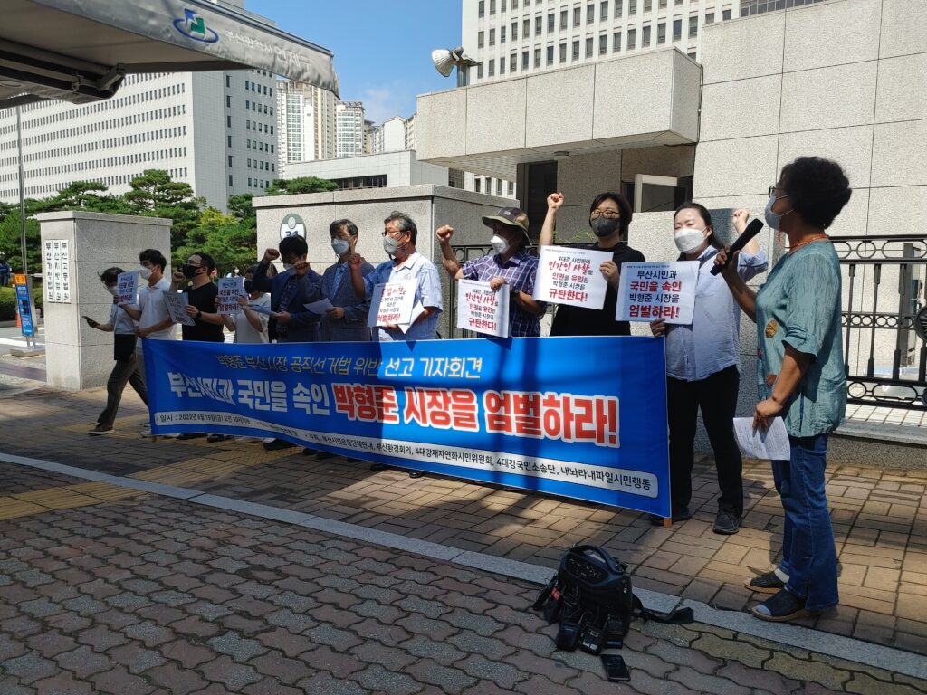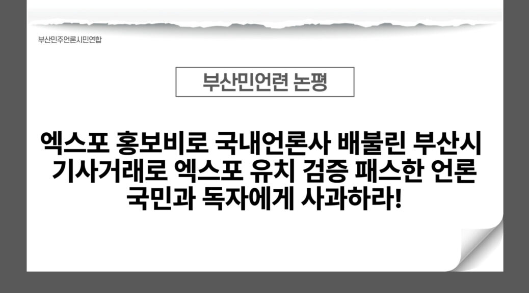 국가이벤트 유치에 대한 언론의 감시 책무를 외면하고 기사거래로 독자를 기만한 채 자사 잇속만 챙긴 언론사들은 사과하라. 또한 아무런 반성없이 또다시 엑스포 재추진을 위한 공론화에 나선 부산시는 자성하라. 철저한 복기와 반성 없는 엑스포 재추진은 있을 수 없다.