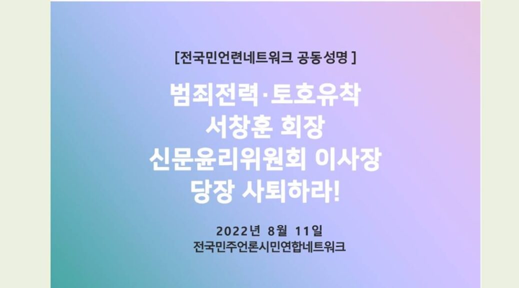 참으로 부끄럽고 참담한 일이다. 언론사 대표로서 자질조차 갖추지 못한 인사가 어떻게 공신력을 생명으로 하는 언론자율규제기구의 수장이 된단 말인가. 신문윤리위원회가 공표한 신문윤리강령은 “언론이 사회적 공기로서 막중한 책임을 지고 있다”는 점을 강조하고 있다. 서창훈 회장은 ‘사회 공기’로서 언론의 일차적 책임, 즉 언론인과 언론사들이 윤리규범을 준수하는지를 살피는 신문윤리위원회 이사장을 맡을 자격이 아예 없는 인물이다.