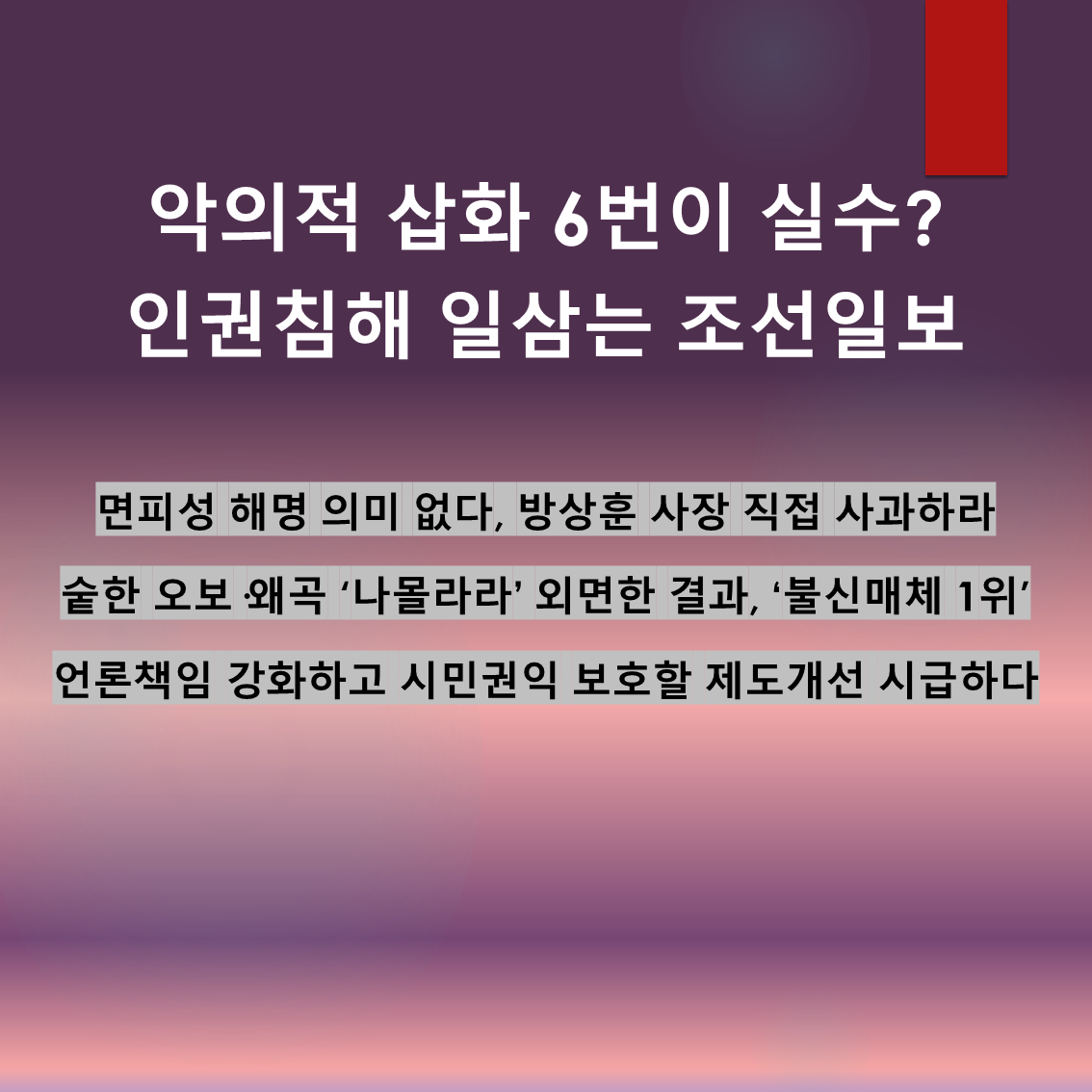 악의적 삽화 6번이 실수? 인권침해 일삼는 조선일보
