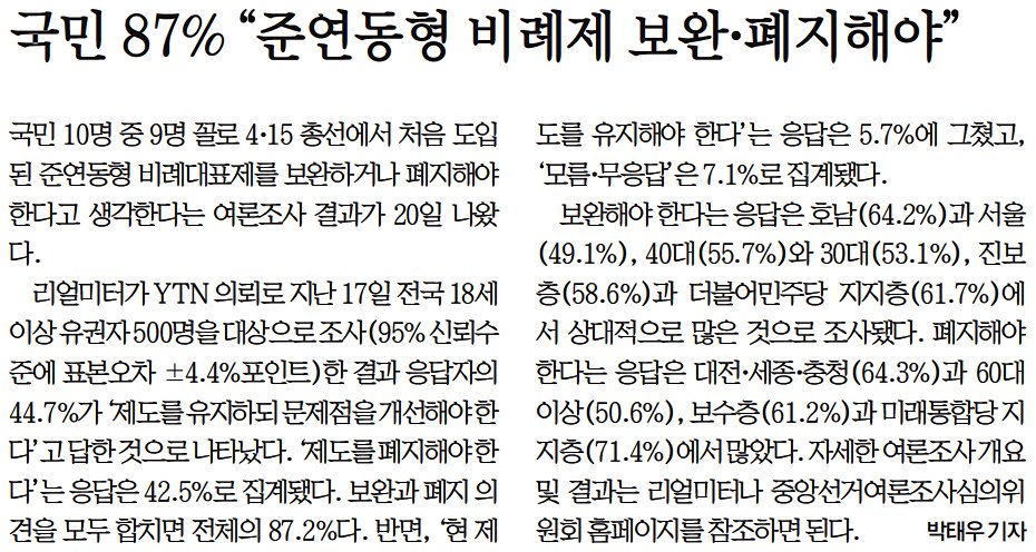 거대 양당 중심 보도 여전