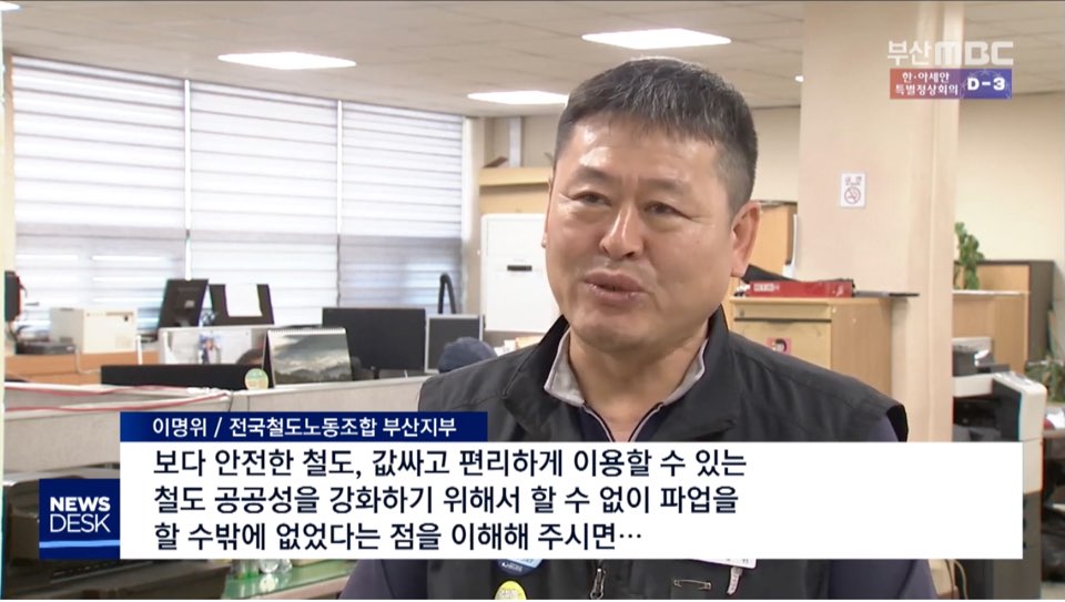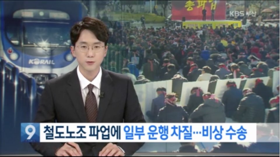 | 11.20 | KBS부산 | [R] 철도노조 파업에 일부 운행 차질··비상 수송 | -강성규/전국철도노조부산본부장 |