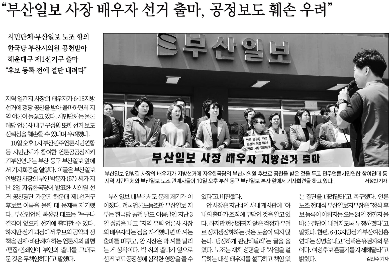 선거가 진행되면서 각종 의혹제기와 공방은 더 심해질 것이다. 이번 지방선거가 부산의 다양한 쟁점을 공론화하고 해법을 모색하는 장이 아니라, 비생산적인 공방으로만 끝나버릴 수 있다. 하기에 언론의 역할이 중요하다. 언론 스스로도 ‘정책보다는 감정 섞인 선거전을 바라보는 유권자들의 평가는 냉정할 전망이다’라고 예측했듯이 선거전에서 상호비방을 부각하는 보도는 자제해야 한다. 아울러 상대 후보 측에 제기하는 의혹은 검증없이 그대로 전달할 것이 아니라 언론이 나서 확인하고 보도해야 한다. 한 쪽의 의혹 제기와 다른 한 쪽의 해명을 검증없이 그대로 전달하는 건 또 다른 싸움으로만 비춰져 유권자의 정치혐오만 키울 뿐이다. 동시에 언론에 대한 불신도 덩달아 커진다는 것을 알았으면 한다.