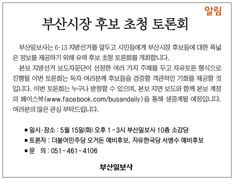 6.13 지방선거가 한 달도 남지 않았다. 이번 모니터 기간 선거 보도에서 전반적으로 정책 보도가 늘었다. 부산시장 후보와 부산시교육감 후보를 중심으로 토론회와 대담 형식을 빌어 그들의 정책을 전달했고, 기초자치단체장 후보를 소개하는 ‘우리동네 구청장’ 코너가 방송되기도 했다. 하지만 부산시장 후보간 고발과 상호 비방, 지지선언 통한 세불리기 등 가열되는 선거 양상을 비판없이 전달하기도 해 아쉬움을 남겼다.