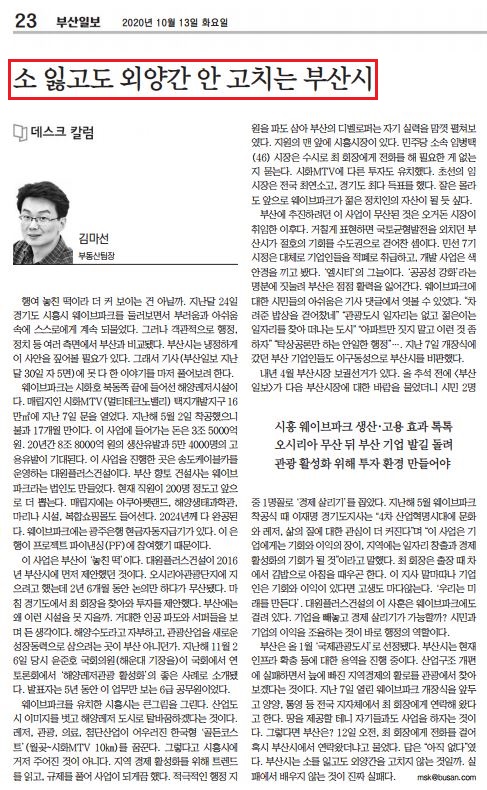 ‘해운대 그랜드호텔’ 개발 논란은 <해운대그랜드호텔 자리에 레지던스 짓나?>(부산일보, 7/28, 11면), <“해안 고층 레지던스…관광 경관 훼손 우려”>(국제신문, 9/17, 6면) 로 보도된 바 있지만 모두 단발성 보도에 그쳐 아쉬웠습니다.