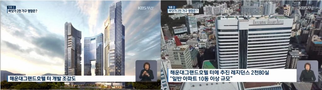 이후 ‘해운대 그랜드호텔’ 개발 논란은 시민단체와 시의원의 문제 제기 수준에 머물러 있었는데요, KBS부산은 11월 3일과 4일 <뉴스9> 의 주요 뉴스로 보도해 논란이 현재진행형임을 알렸습니다. ‘비리백화점’으로 남은 엘시티를 비롯해 난개발에 대한 지역 언론의 감시는 사후약방문식이 대부분이었습니다. 그런 가운데 KBS부산의 이번 보도는 개발 계획단계서부터 문제를 적극적으로 제기해 언론의 감시 역할이 돋보였습니다.