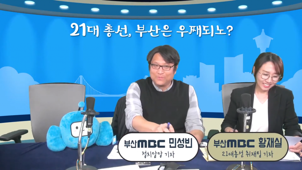 부산MBC는 유튜브를 통해 매주 월요일 오후 4시 <21대 총선, 부산은 우째되노?>를 내보내고 있다. 4월 7일에 방송한 8번째 시간 2부 <“하이고마 이기 다 공약이라꼬?” 공약철저 검증>에서는 현역 재출마 의원들의 의정활동과 공약을 점검했다. 이 아이템을 취재해 메인뉴스에 리포팅했던 황재실 기자가 출연해서 시간에 구애받지 않고 좀 더 자세한 내용까지 해설했고, 취재하면서 기자가 평가한 내용을 들을 수 있었다.