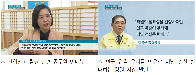 인구유출에 대한 공포심이 잘못된 정책을 낳고 있다는 진단도 내놨다. 서부경남 KTX 노선 유치경쟁, 신도시 과잉개발, 창원-김해 간 비음산 터널 개통에 대한 찬반 대립과 같은 화두들이 결국은 해당 지자체에 인구를 붙잡아두고자 하는 욕심에서 비롯된다는 것이다. KNN은 인구감소가 오히려 삶의 질을 높이는 기회일 수 있다는 역발상이 필요하다며 마지막 리포트로 <인구 감소 극복하는 공동체의 힘>을 배치했다. 김해 회현동, 밀양 단장면, 양산시 소주동, 남해 상주면 주민공동체를 보여주면서 행복은 인구수와 비례하지 않는다고 했다. 소개한 마을 하나하나가 더 자세히 들여다 볼만한 사례였다.